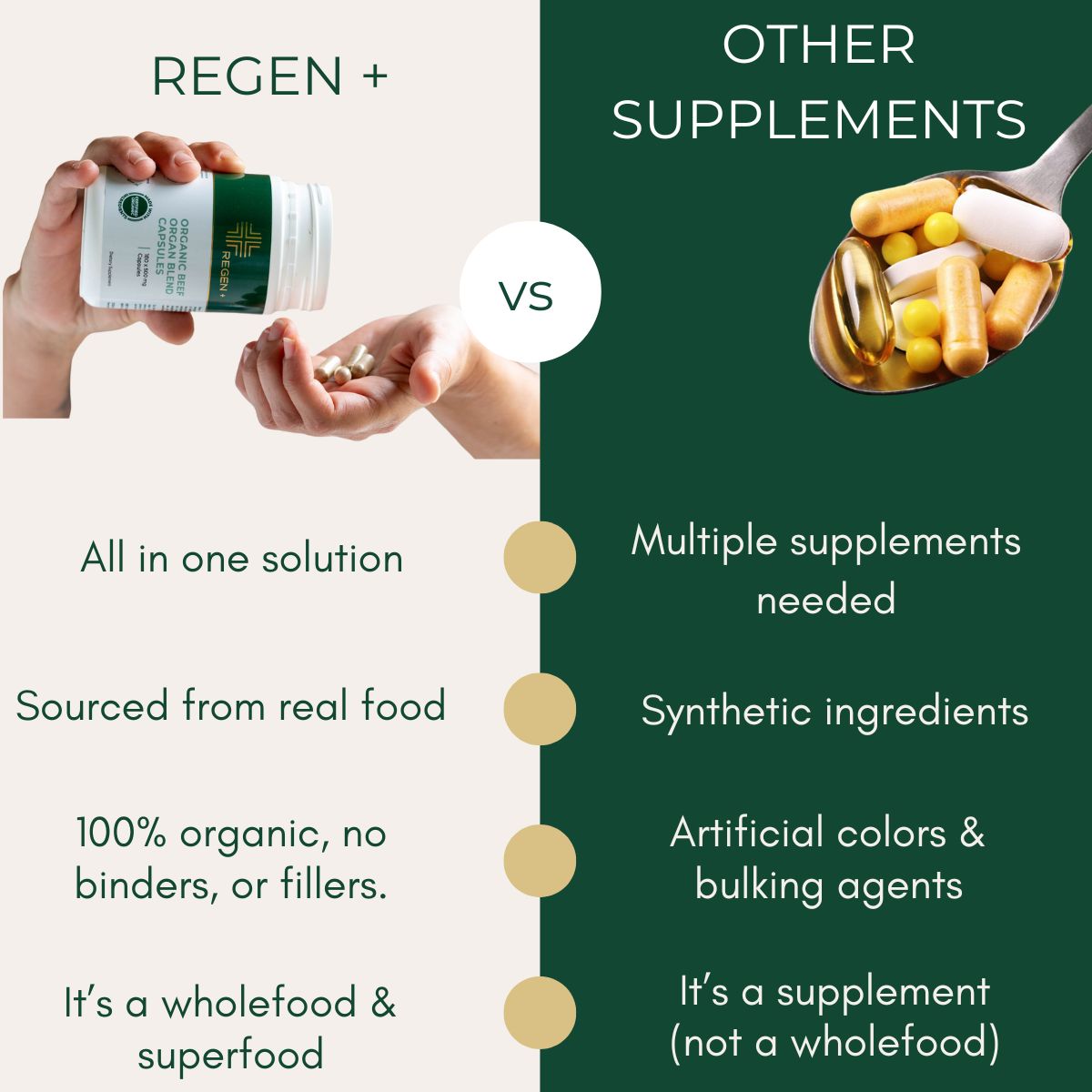 Increasingly aware of the profound impact our choices around diet, medication and lifestyle have on our wellbeing, and witnessing the transformative power of organic, nutrient-dense foods firsthand, this lifelong focus on health and sustainability has led to the development of REGEN + supplements.